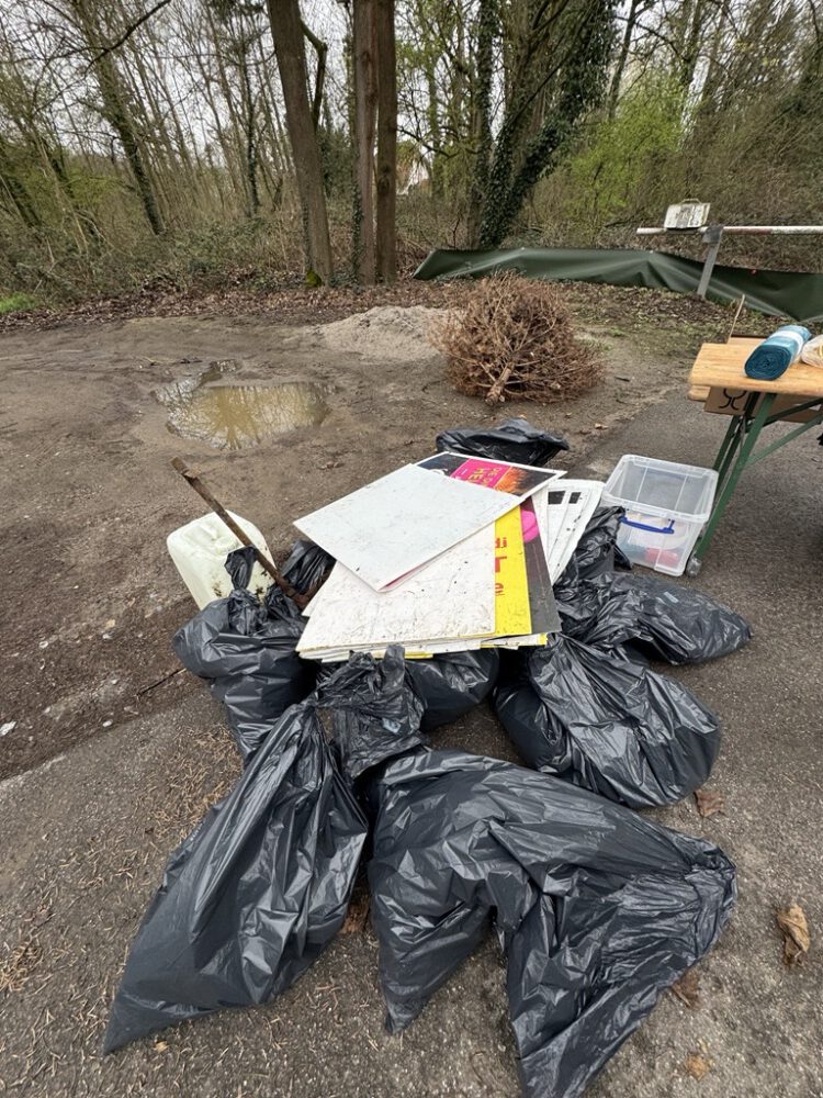 Trotz bitterkalter Temperaturen war die Motivation groß. Ausgerüstet mit Handschuhen, Müllsäcken und Greifzangen haben wir uns in kleinen Teams auf den Weg gemacht und unser Umfeld gründlich gereinigt. Besonders beeindruckend – und gleichzeitig erschreckend – war die große Menge an Zigarettenstummeln und Filtern, die wir eingesammelt haben. Das ist umso erstaunlicher, da unser Sportgelände eigentlich ein rauchfreier Sportplatz ist und sich Teile unseres Einsatzgebietes direkt an ein Waldstück anschließen, in dem regelmäßig Waldbrandgefahr besteht.