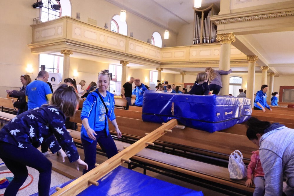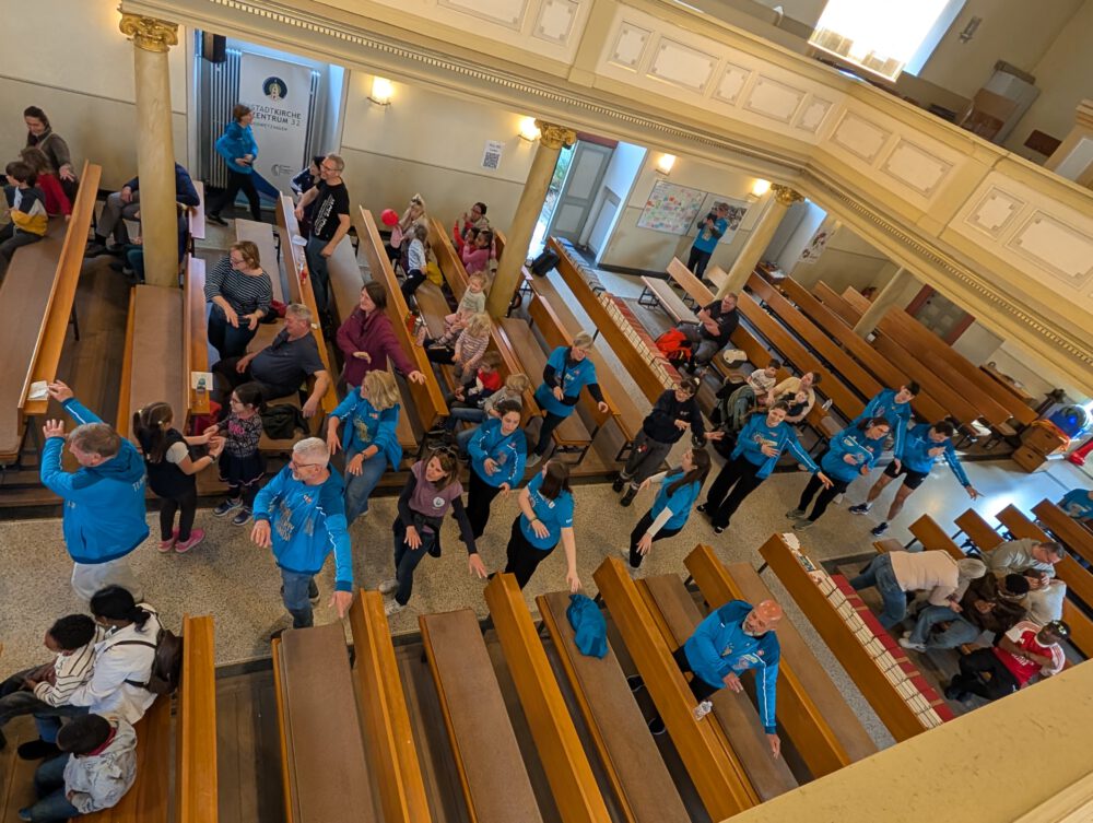 Schon am Morgen wurde deutlich, dass dieser Tag anders wird. Mit viel Einsatz haben wir die Stadtkirche und den Pfarrhof in Bewegungsflächen verwandelt. Matten, Rollbretter, Parcours und Spielstationen standen bereit und schnell füllte sich der Raum mit Leben.
