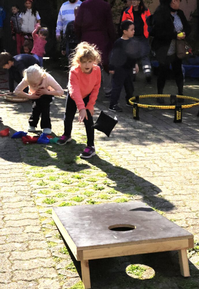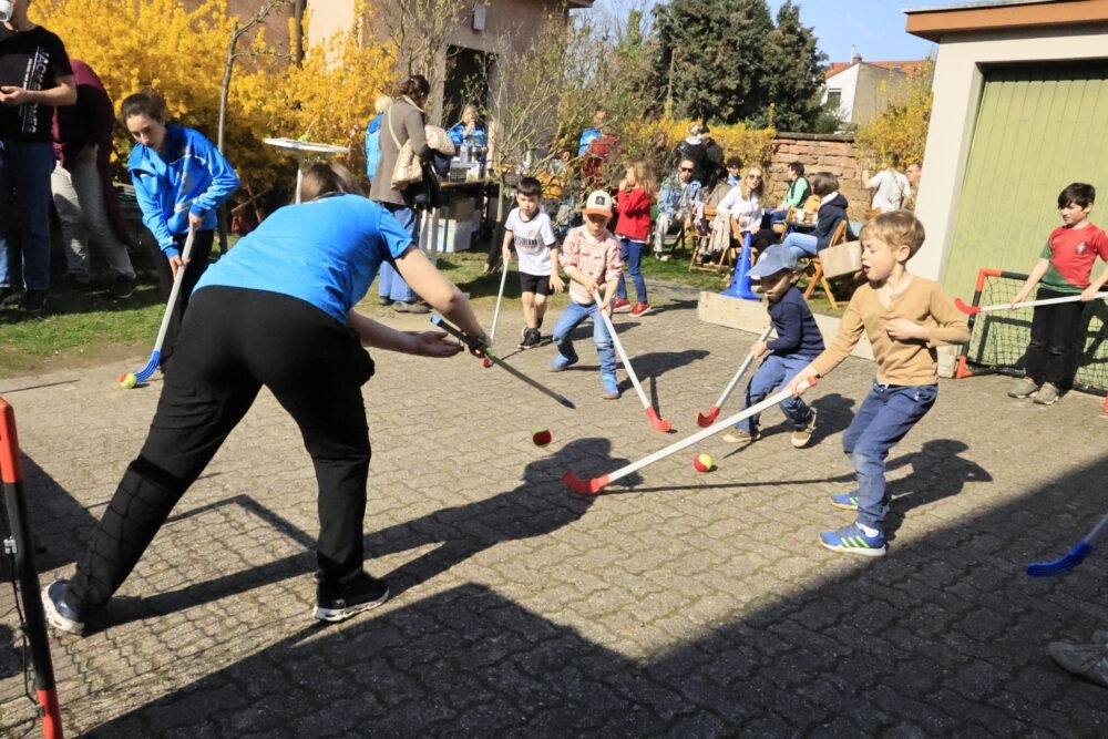 Zwischen Kirchenbänken wurde gesprungen, geworfen und gelacht. Draußen ging es mit Basketball, Hockey und Tischtennis weiter. Viele Familien sind trotz des großen Trubels rund um die Kirschblüte zu uns gekommen und haben mitgemacht.